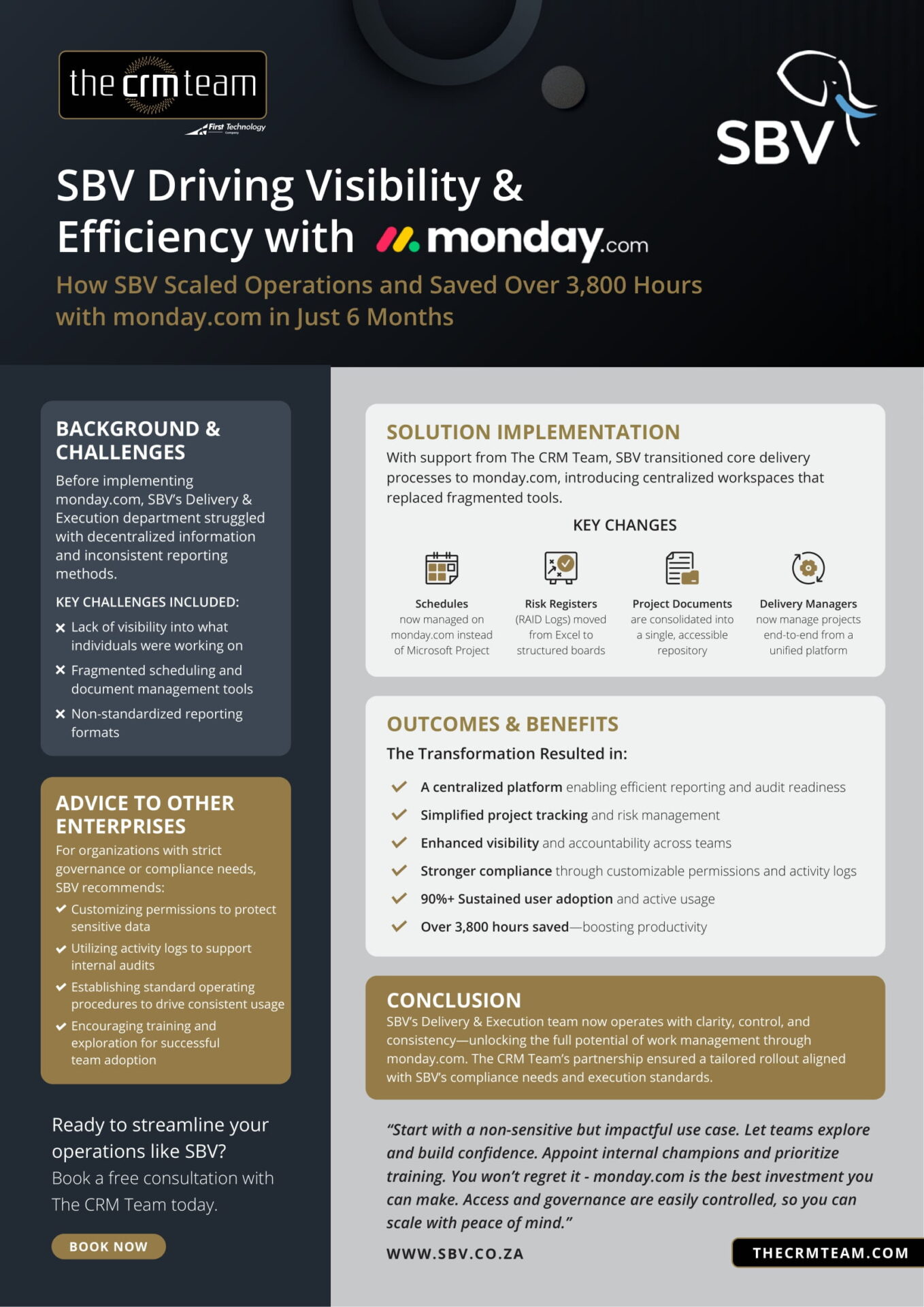 Every organization has different needs. The flexibility of monday service makes it easy to brand your portal, configure request forms, and adjust approval paths without developer support. As needs change, workflows can be updated in minutes.